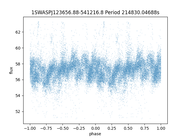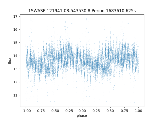 | 1SWASPJ121941.08-543530.8 | 12.16 | 1683610.625 ~ | Rotator | Certain | 12h19m41.08s | -54d35m30.8s |  |