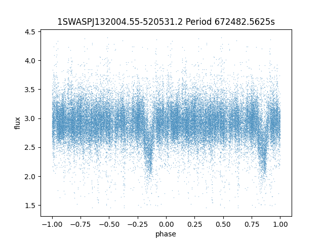 | 1SWASPJ132004.55-520531.2 | 13.84 | 672482.5625 ~ | EA/EB | Half | 13h20m04.55s | -52d05m31.2s |  |