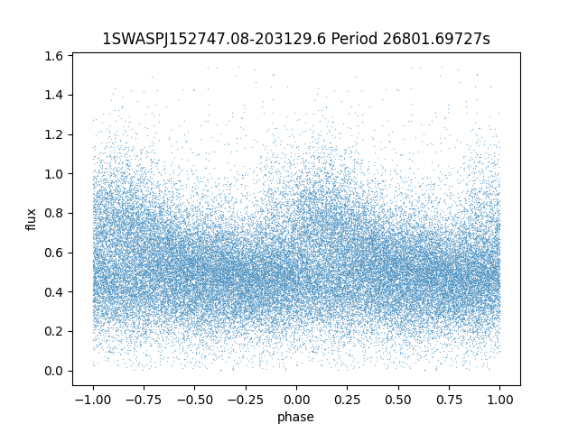 | 1SWASPJ152747.08-203129.6 | 15.69 | 26801.69727 ~ | Pulsator | Uncertain | 15h27m47.08s | -20d31m29.6s |  |