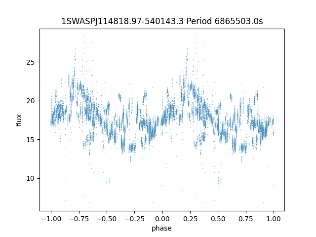 | SuperWASP ID | Mean Magnitude | Period (seconds) | Majority Classification | Folding flag | RA | Dec | Lightcurve |