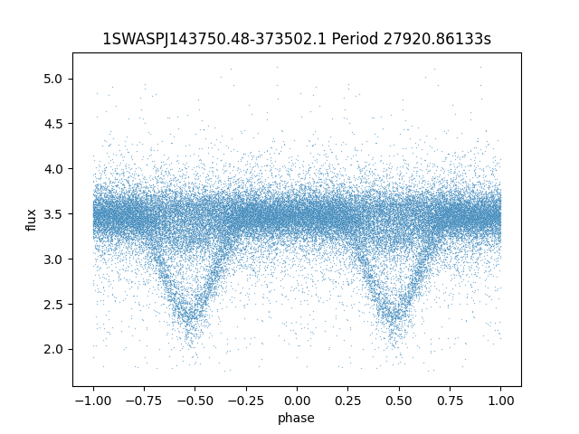| 1SWASPJ143750.48-373502.1 | 13.68 | 27920.86133 ~ |