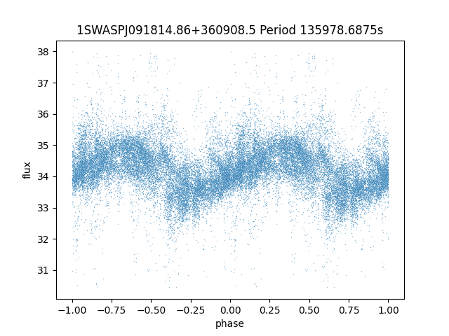 | 1SWASPJ091814.86+360908.5 | 11.16 | 135978.6875 ~ |