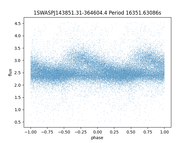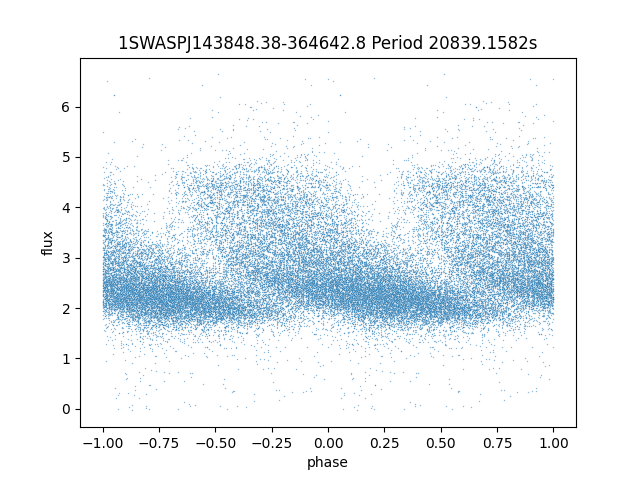 | 1SWASPJ143851.31-364604.4 | 13.98 | 26354.16211 ~ |