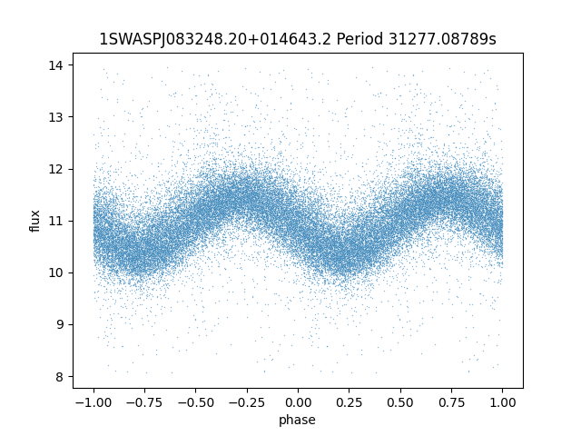 | 1SWASPJ083248.20+014643.2 | 12.40 | 31277.08789 ~ |