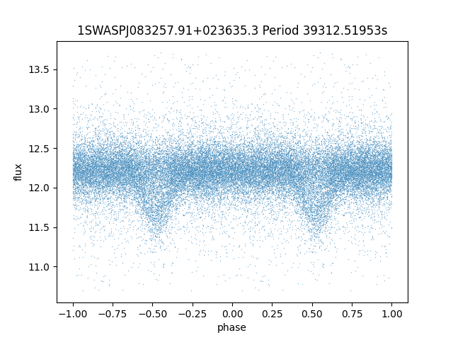 | 1SWASPJ083257.91+023635.3 | 12.29 | 39312.51953 ~ |