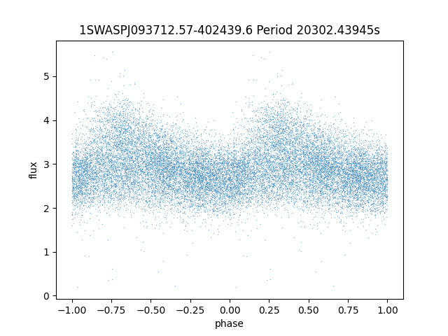 | SuperWASP ID | Mean Magnitude | Period (seconds) | Majority Classification | Folding flag | RA | Dec | Lightcurve |