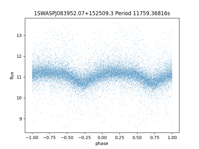 | 1SWASPJ083952.07+152509.3 | 12.39 | 11759.36816 ~ |