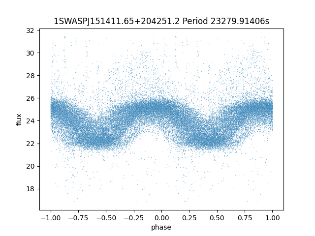 | SuperWASP ID | Mean Magnitude | Period (seconds) | Majority Classification | Folding flag | RA | Dec | Lightcurve |