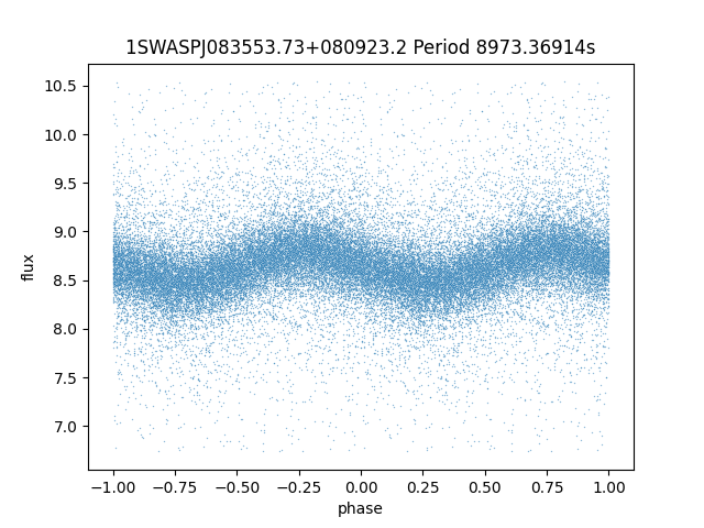 | 1SWASPJ083553.73+080923.2 | 12.66 | 8973.36914 ~ |