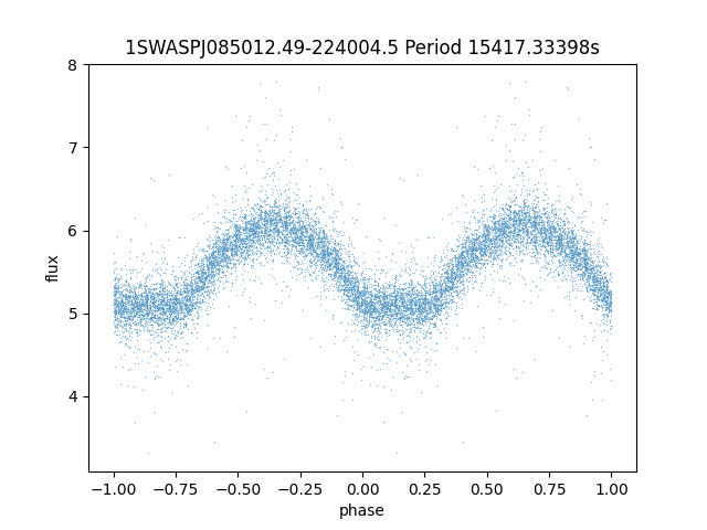 | 1SWASPJ085012.49-224004.5 | 13.14 | 15417.33398 ~ |