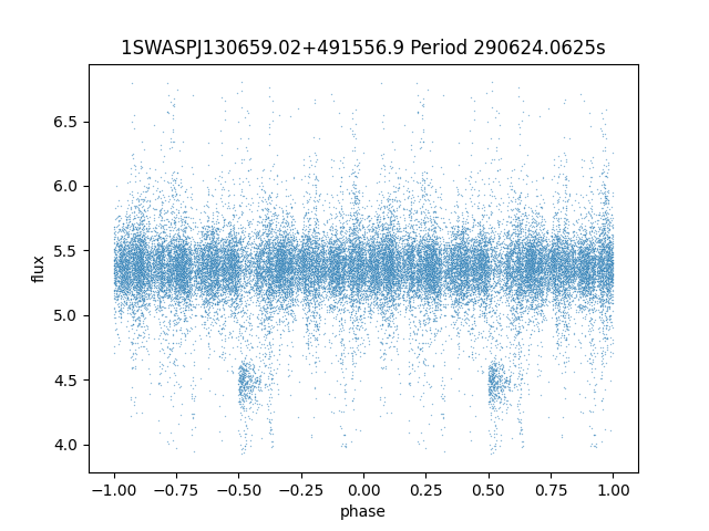| 1SWASPJ130659.02+491556.9 | 13.18 | 290624.0625 ~ |