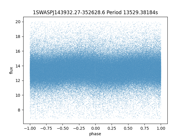 | 1SWASPJ143932.27-352628.6 | 12.18 | 13529.38184 ~ |