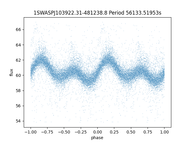 | 1SWASPJ103922.31-481238.8 | 10.55 | 56133.51953 ~ |