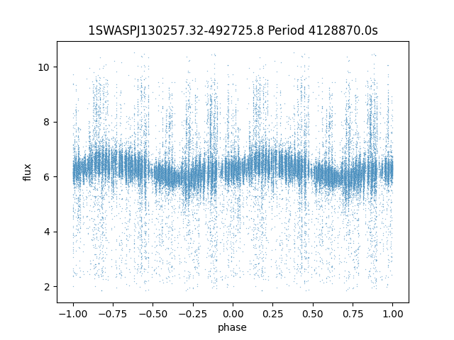 | 1SWASPJ130257.32-492725.8 | 13.02 | 4128870.0 ~ |