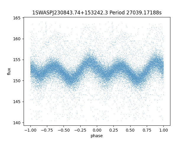 | 1SWASPJ230843.74+153242.3 | 9.54 | 20580.82227 ~ |