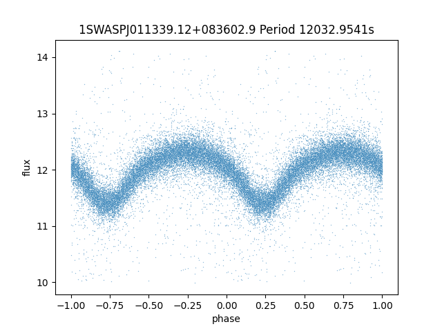 | 1SWASPJ011339.12+083602.9 | 12.30 | 12032.9541 ~ |
