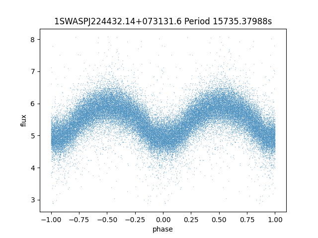 | 1SWASPJ224432.14+073131.6 | 13.16 | 15735.37988 ~ |