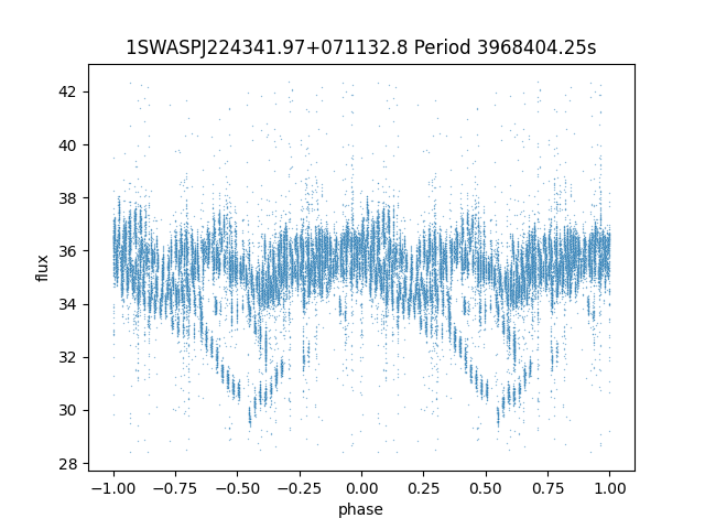 | 1SWASPJ224341.97+071132.8 | 11.14 | 3968404.25 ~ |