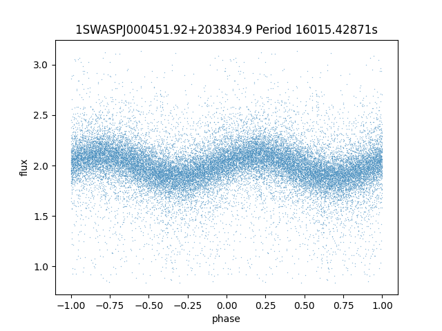 | 1SWASPJ000451.92+203834.9 | 14.25 | 16015.42871 ~ |
