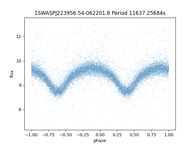 | 1SWASPJ223956.54-062201.8 | 12.57 | 11637.25684 ~ |