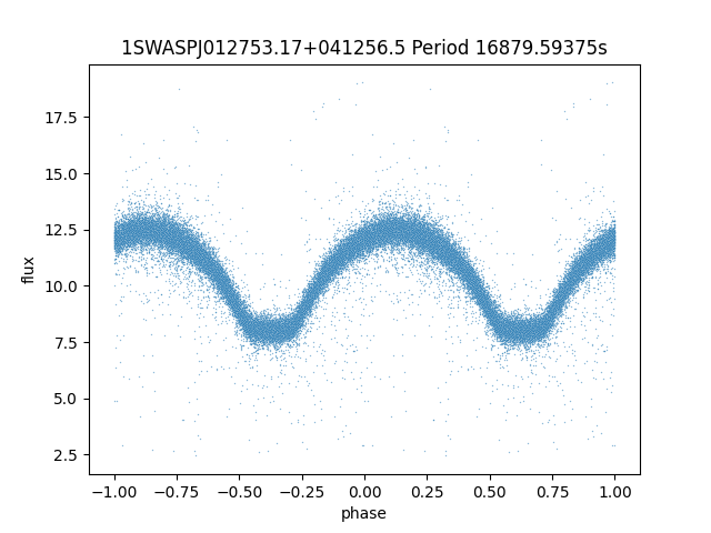 | 1SWASPJ012753.17+041256.5 | 12.45 | 16879.59375 ~ |