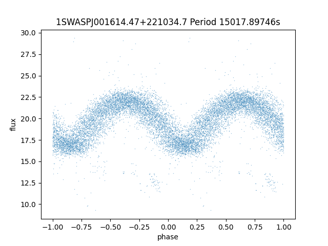 | 1SWASPJ001614.47+221034.7 | 11.77 | 15017.89746 ~ |