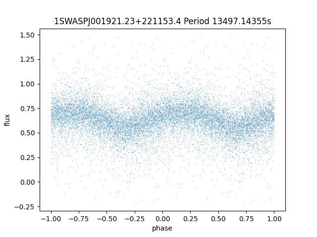 | 1SWASPJ001921.23+221153.4 | 15.50 | 13497.14355 ~ |