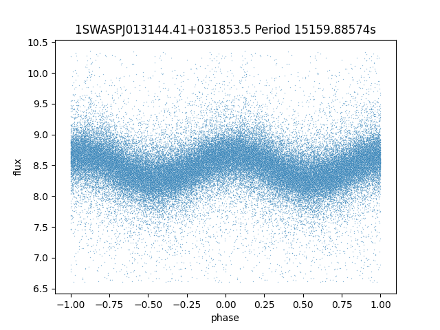 | 1SWASPJ013144.41+031853.5 | 12.68 | 15159.88574 ~ |