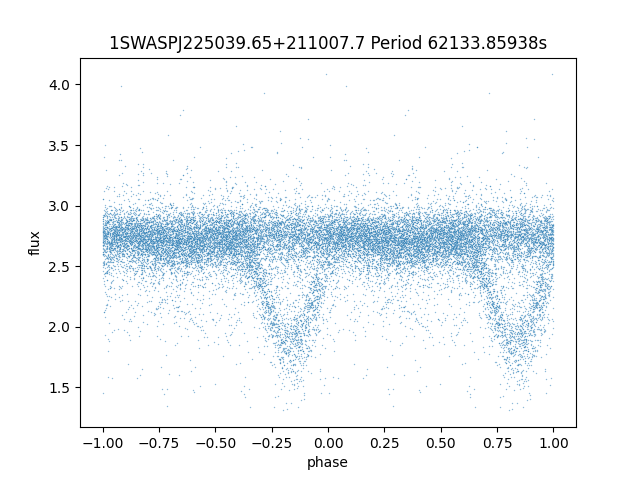 | 1SWASPJ225039.65+211007.7 | 13.95 | 62133.85938 ~ |