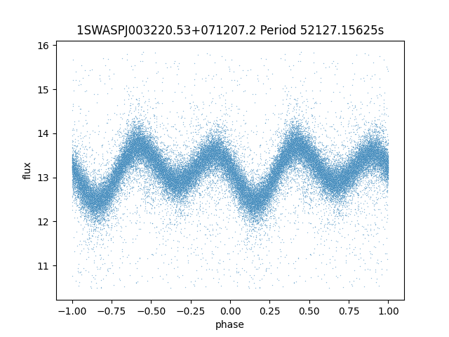 | SuperWASP ID | Mean Magnitude | Period (seconds) | Majority Classification | Folding flag | RA | Dec | Lightcurve |