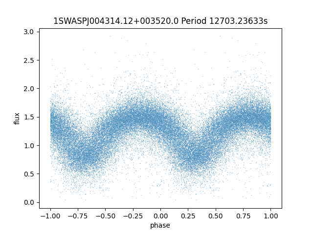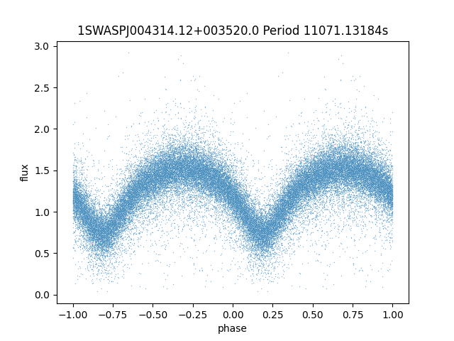 | 1SWASPJ004314.12+003520.0 | 14.78 | 11071.13184 ~ |