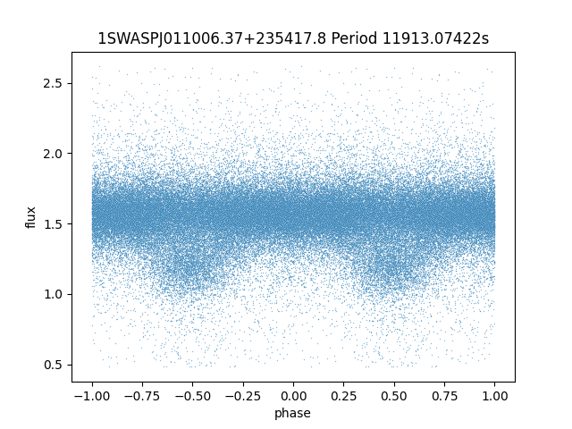 | 1SWASPJ011006.37+235417.8 | 14.54 | 11913.07422 ~ |