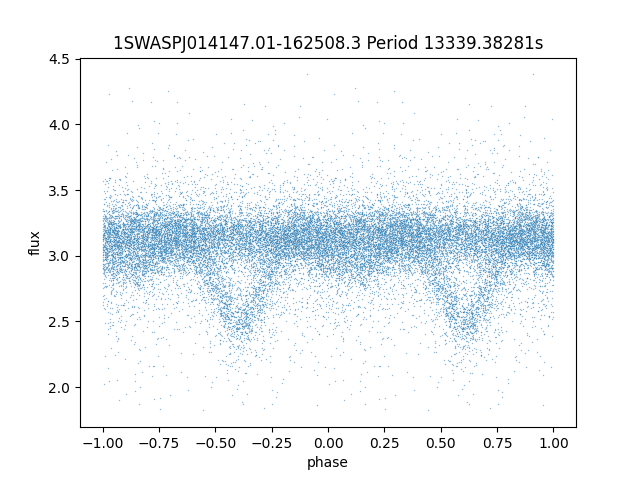 | 1SWASPJ014147.01-162508.3 | 13.78 | 13339.38281 ~ |