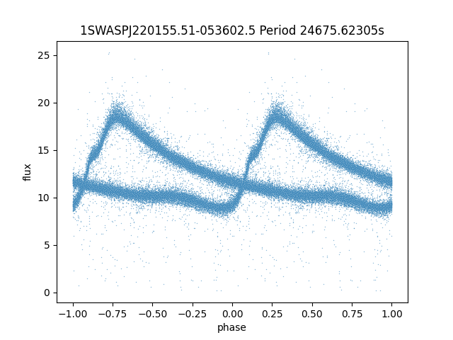 | 1SWASPJ220155.51-053602.5 | 12.27 | 24675.62305 ~ |