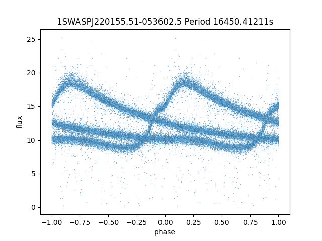 | 1SWASPJ220155.51-053602.5 | 12.27 | 16450.41211 ~ |