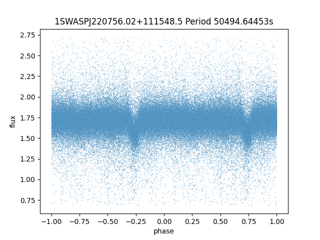 | 1SWASPJ220756.02+111548.5 | 14.42 | 50494.64453 ~ |