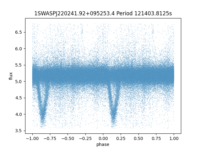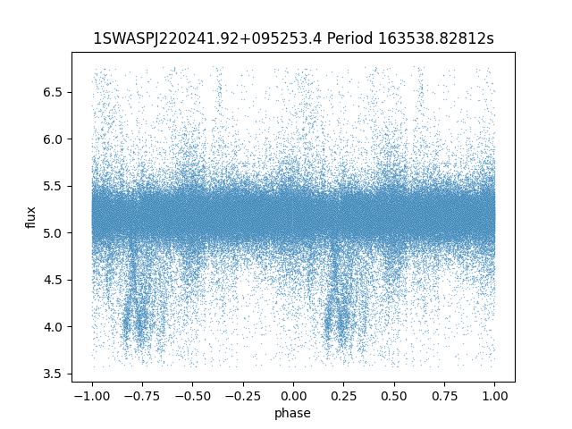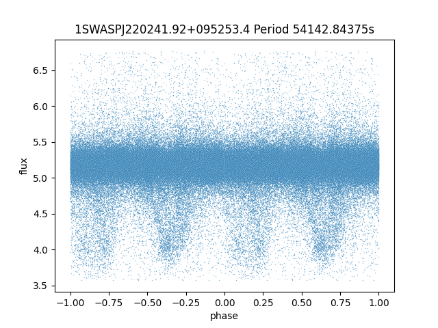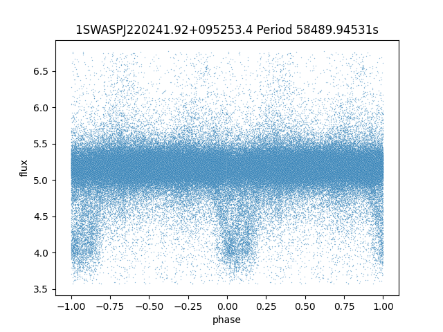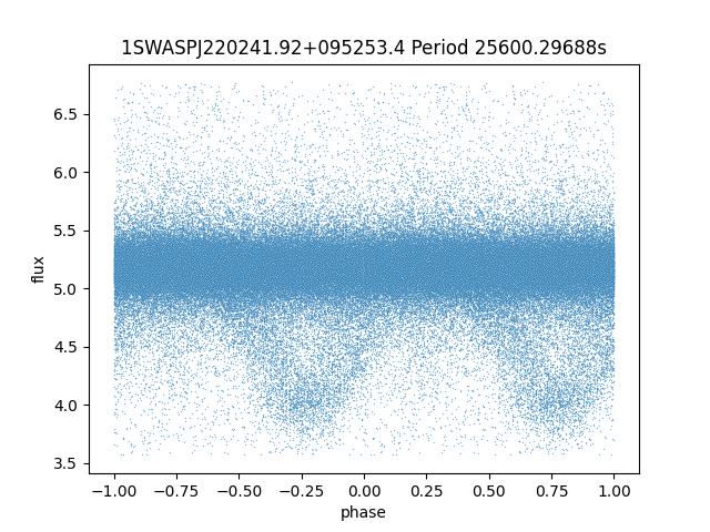 | 1SWASPJ220241.92+095253.4 | 13.22 | 25600.29688 ~ |