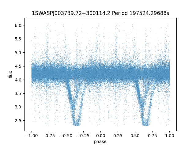 | 1SWASPJ003739.72+300114.2 | 13.45 | 197524.29688 ~ |