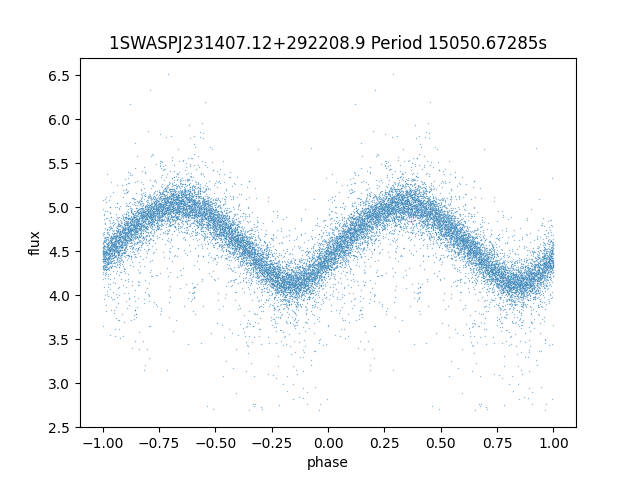 | 1SWASPJ231407.12+292208.9 | 13.34 | 15050.67285 ~ |