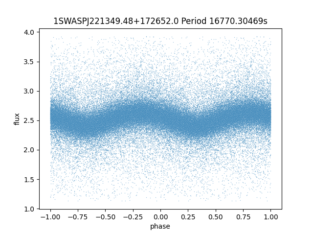 | 1SWASPJ221349.48+172652.0 | 13.99 | 16770.30469 ~ |