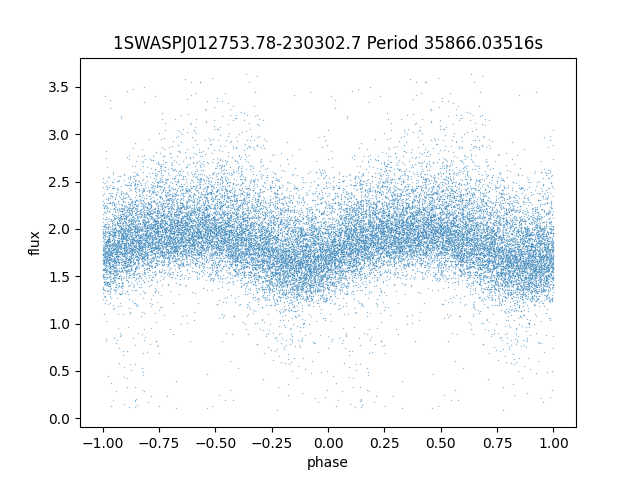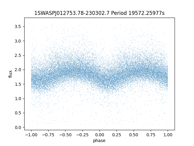 | 1SWASPJ012753.78-230302.7 | 14.31 | 19572.25977 ~ |