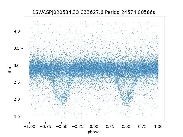 24574.00586 second period, ~7 hours1SWASPJ020534.33-033627.6