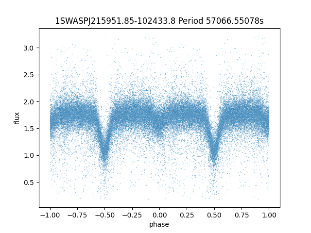 | 1SWASPJ215615.43-065442.6 | 14.67 | 13916.63477 ~ |
