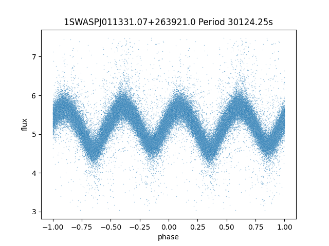 30124.25 second period, ~8 hours1SWASPJ011331.07+263921.0