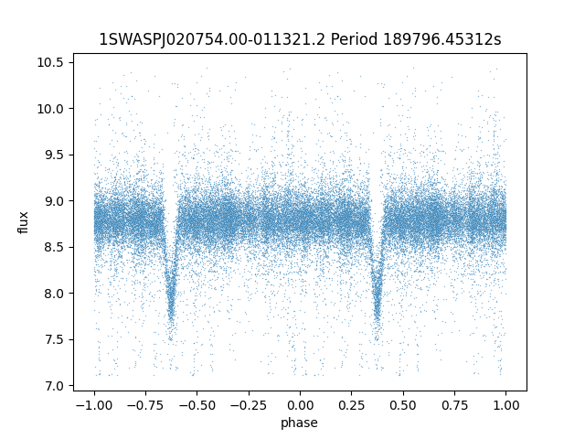| 1SWASPJ020754.00-011321.2 | 12.65 | 189796.45312 ~ |
