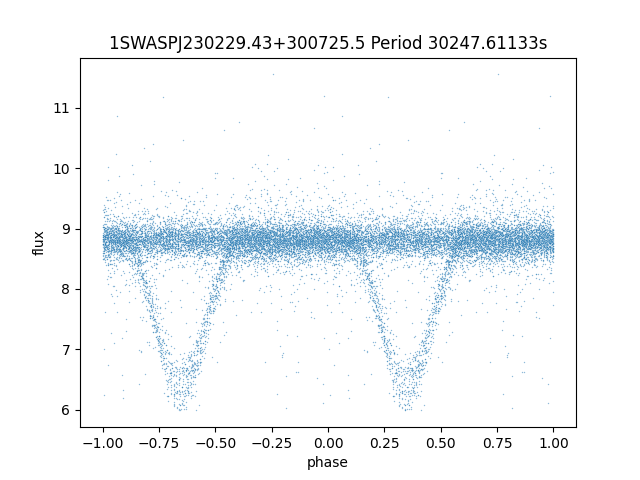 | 1SWASPJ230229.43+300725.5 | 12.66 | 30247.61133 ~ |
