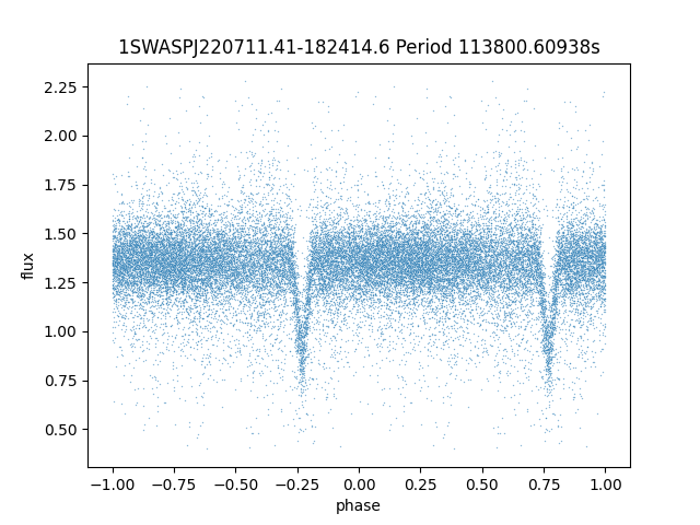 | 1SWASPJ220711.41-182414.6 | 14.69 | 113800.60938 ~ |