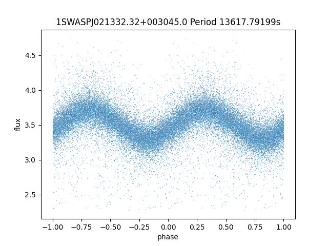 | 1SWASPJ021332.32+003045.0 | 13.64 | 27235.70898 ~ |
