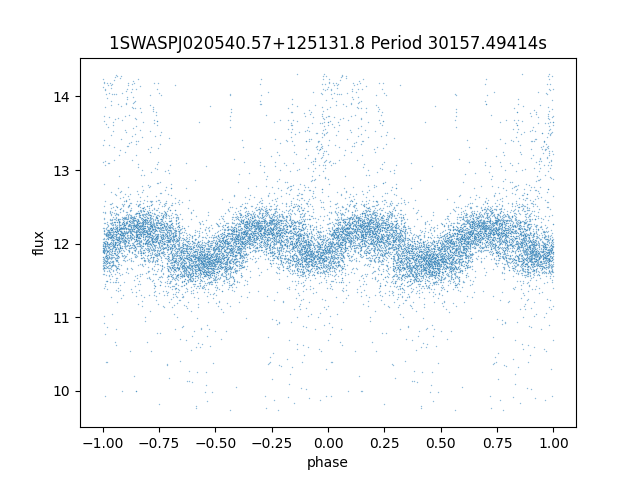 | 1SWASPJ020540.57+125131.8 | 12.30 | 30157.49414 ~ |