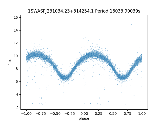 | 1SWASPJ231034.23+314254.1 | 12.65 | 18033.90039 ~ |
